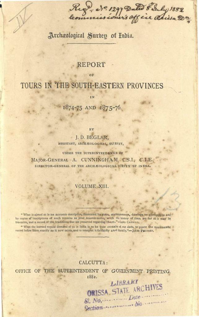 Archaeological Survey of India-XIII.(Report of tours in the South Eastern Provinences 1874-75 and 1875-76)