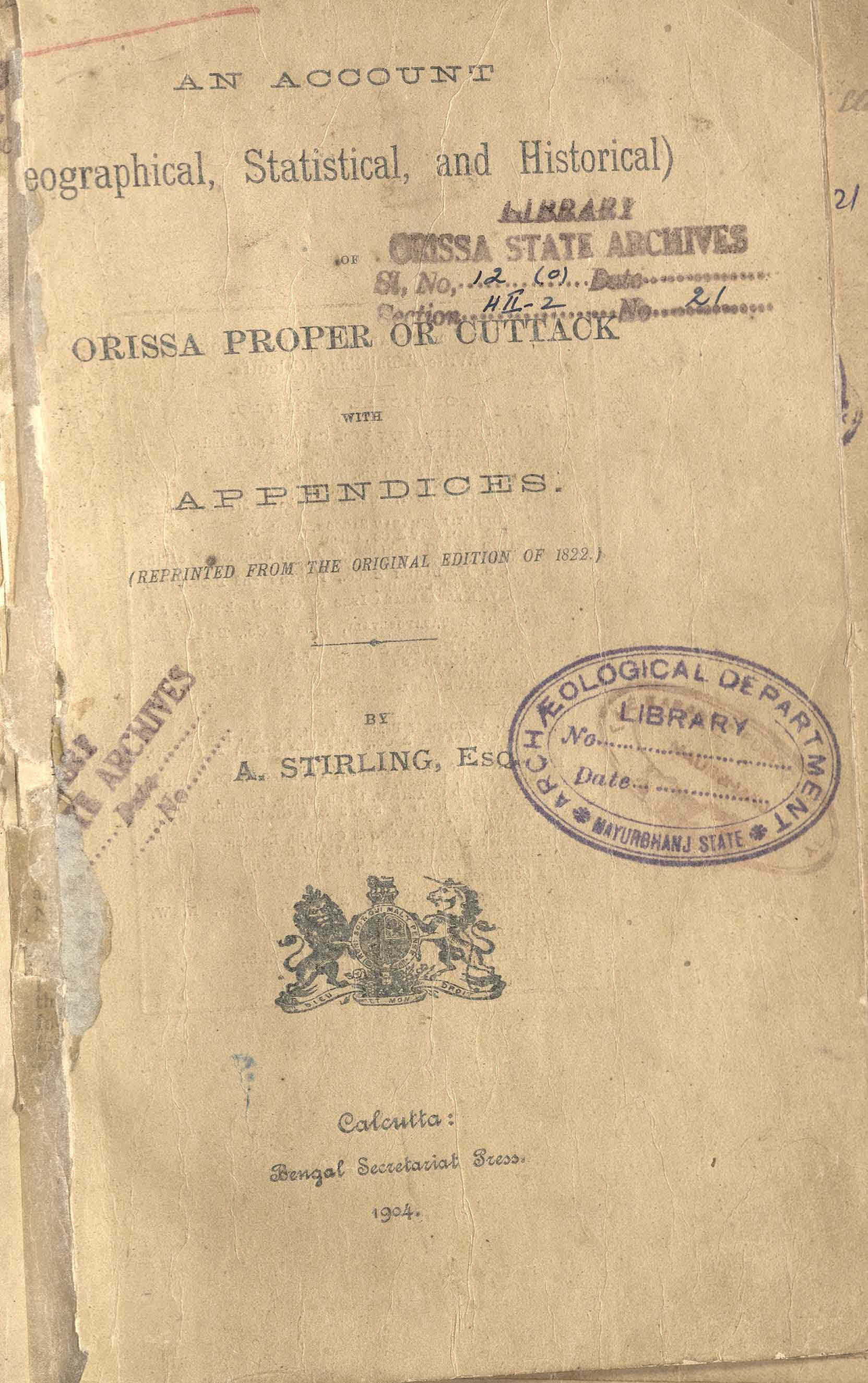 » An Account (Geographycal Statisticas and Historical) of Orissa;Proper on Cuttack with Appendics