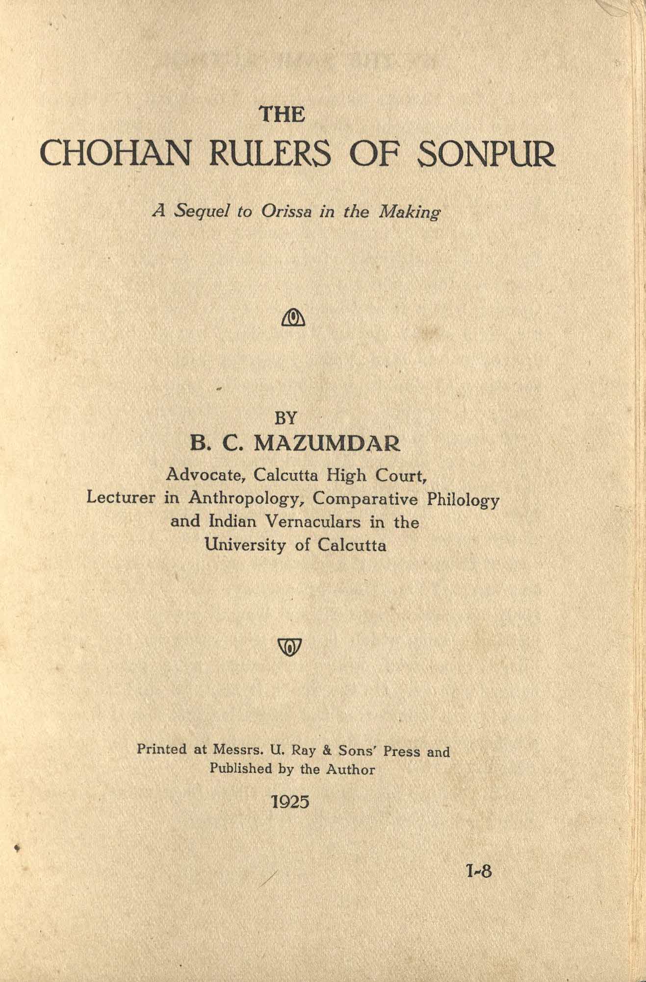The Chohan Rulers of Sonpur, A Sequel to Orissa on the making.