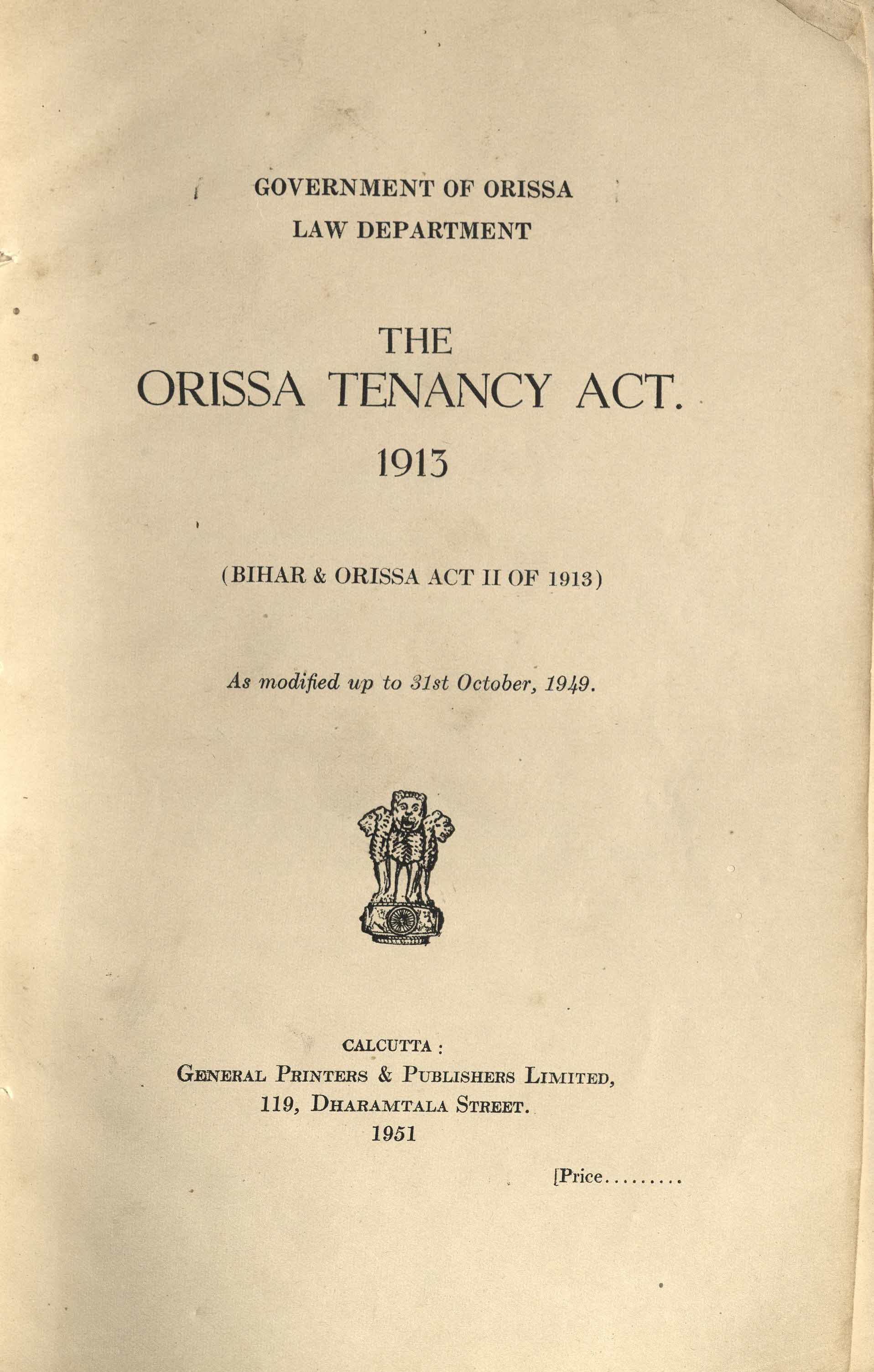 » The Orissa Tenancy Act,1913.(Bihar and Orissa Act II of 1913)as modified up to 31st oct 1949