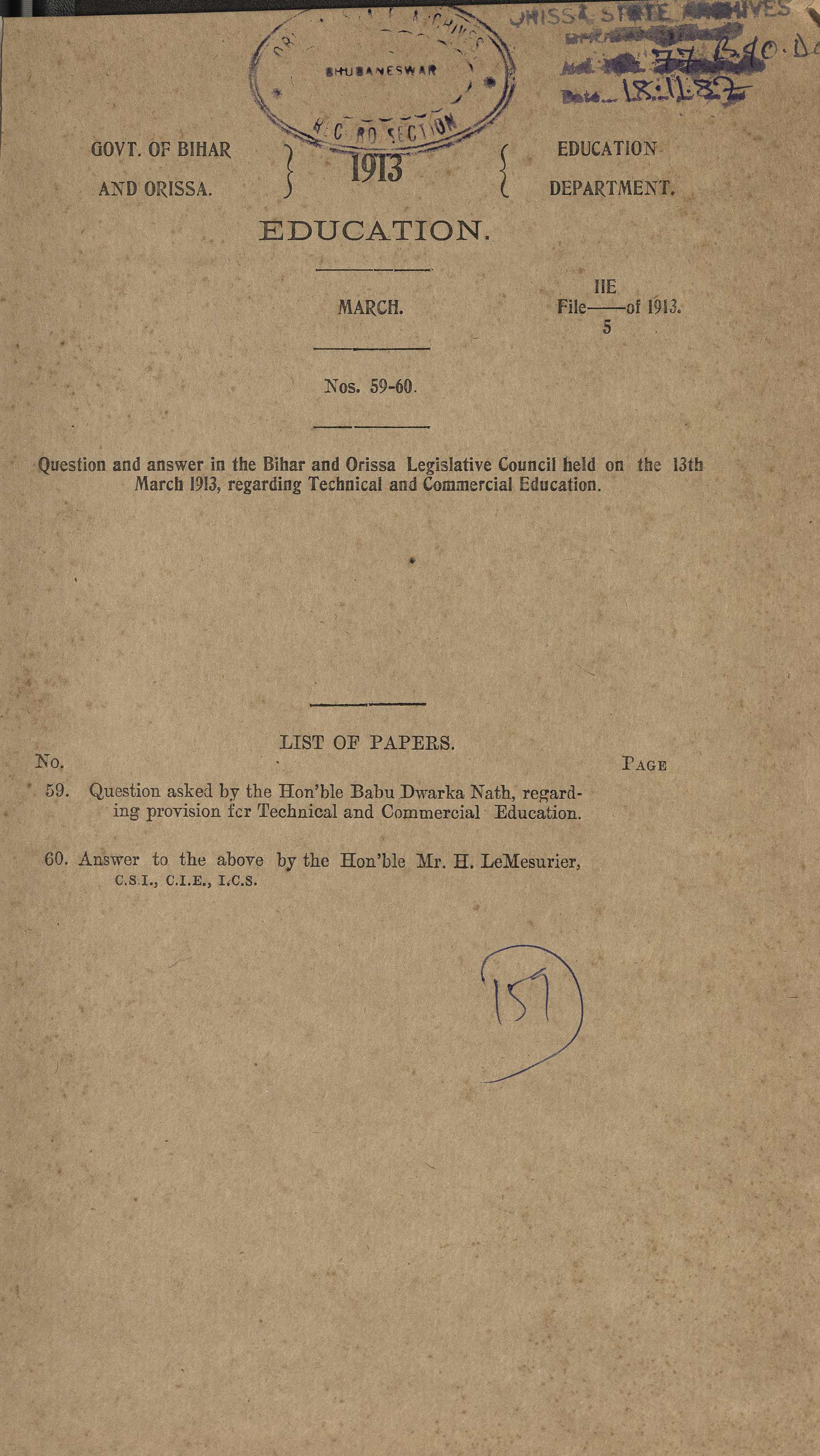 » Bihar and Orissa Council