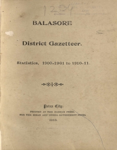 Balasore District Gazetteer Statistics, 1900-1911.